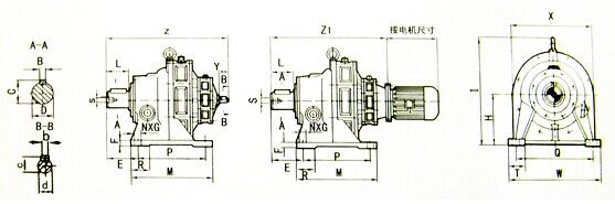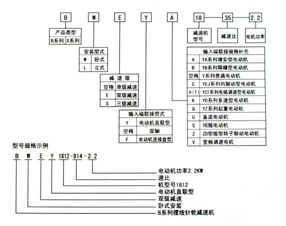 | B系列(機(jī)械部標(biāo)) | 12 | 15 | 18 | 22 | 27 | 30 | 33 | 39 | 45 | 55 | 65 | | X系列 | 2 | 3 | 4 | 5 | 6 | 7 | 8 | 9 | 10 | 11 | 12 | | B系列(上海標(biāo)) | B10 | B11 | B12 | B13 | B14 | B14A | B15 | B16 | B17 | B18 | B19 | | B系列(機(jī)械部標(biāo)) | 1812 | 2215 | 2715 | 3018 | 3322 | 3922 | 4527 | 5530 | 6533 | | X系列 | 42 | 53 | 63 | 74 | 84 | 95 | 106 | 117 | 128 | | B系列(上海標(biāo)) | B120A | B131A | B141A | B142A | B153A | BB163 | B174 | B184 | B195 | | 本公司其他產(chǎn)品介紹:1、生產(chǎn)JB型HG5-251-79 | | 2、生產(chǎn)與其他特殊動(dòng)力源相配套的法蘭聯(lián)接擺針輪減速機(jī) | 五、擺線針輪減速機(jī)外形及安裝尺寸1、BW、BWY外型及安裝尺寸 |